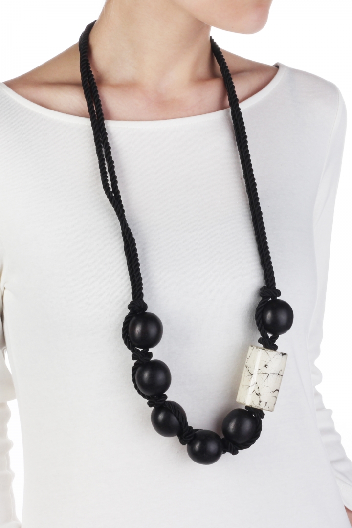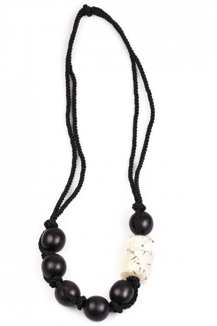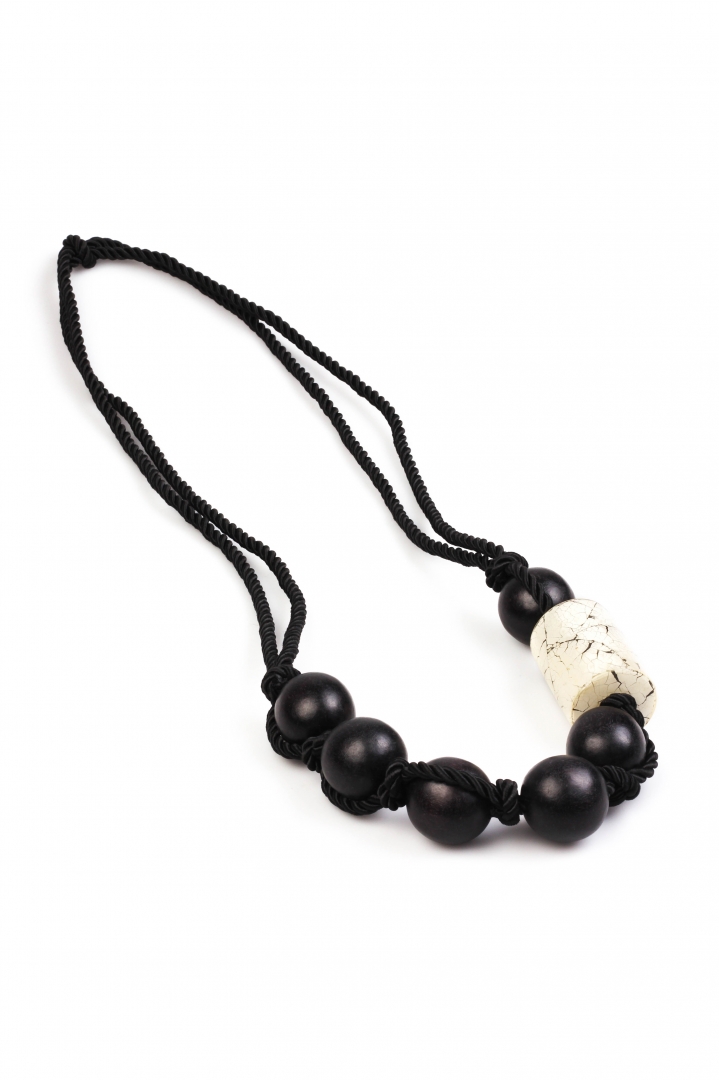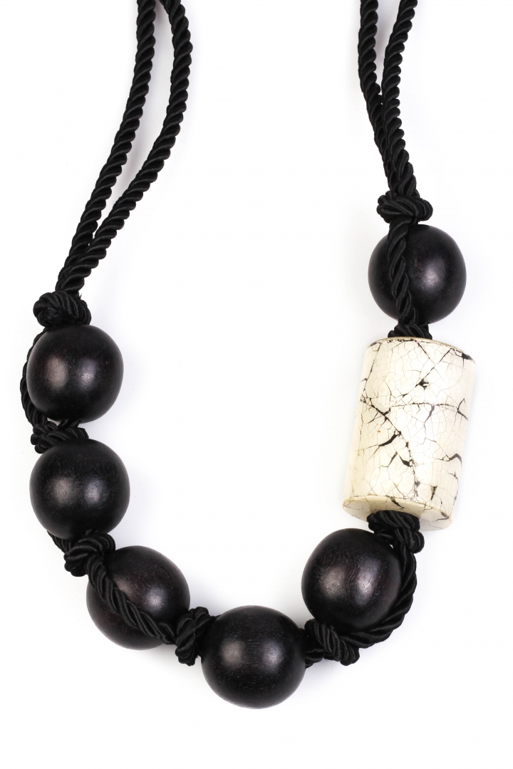 Texturized chunky white and black beads harmony in monochrome. For a very natural and boho look - it's made of wood.