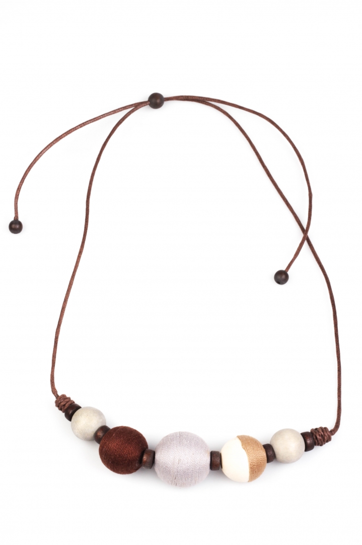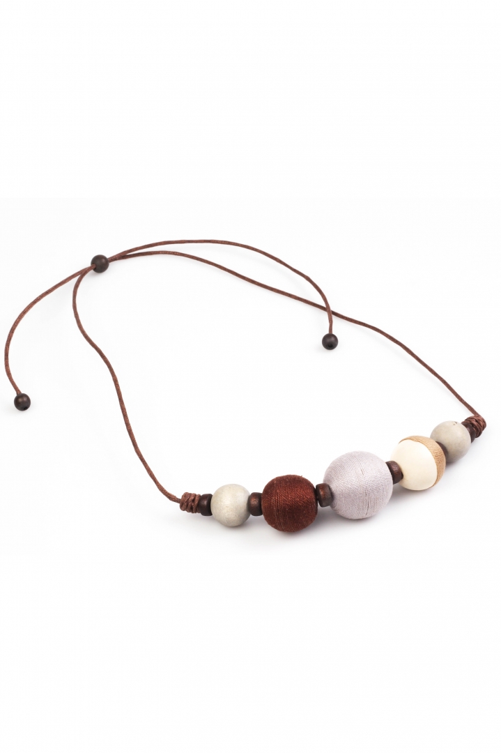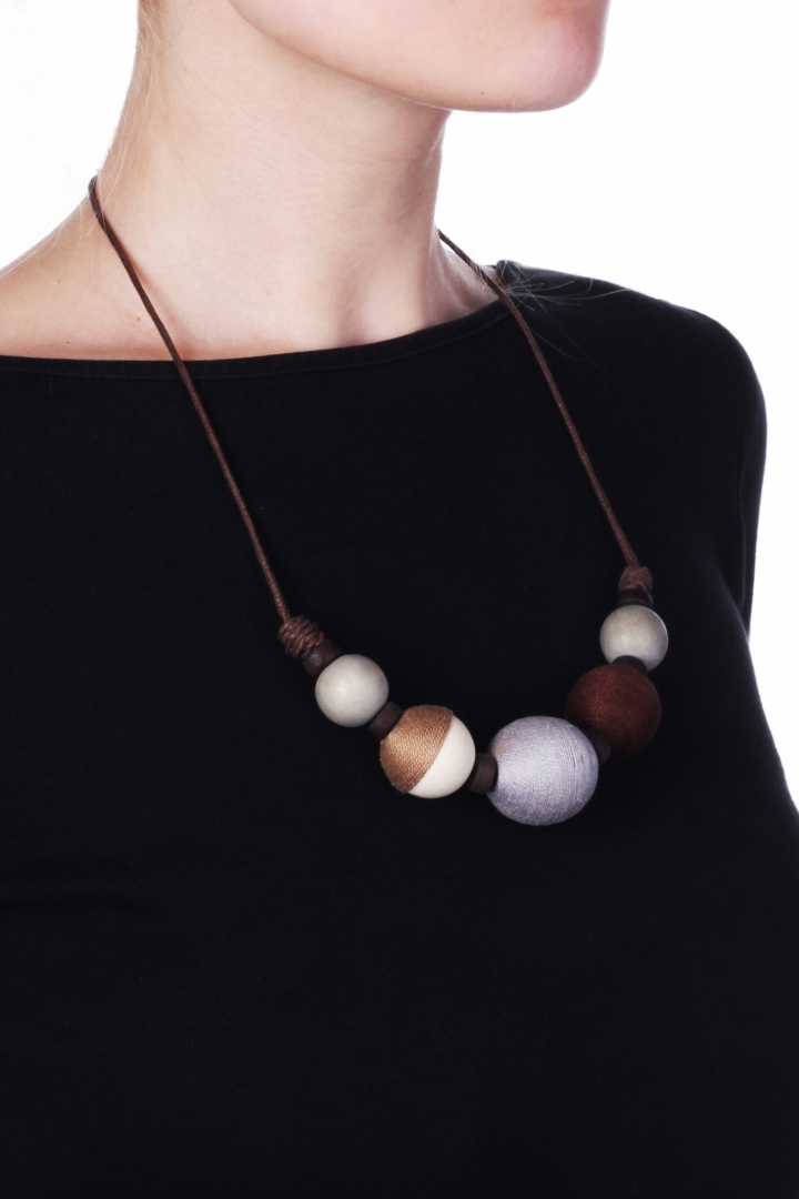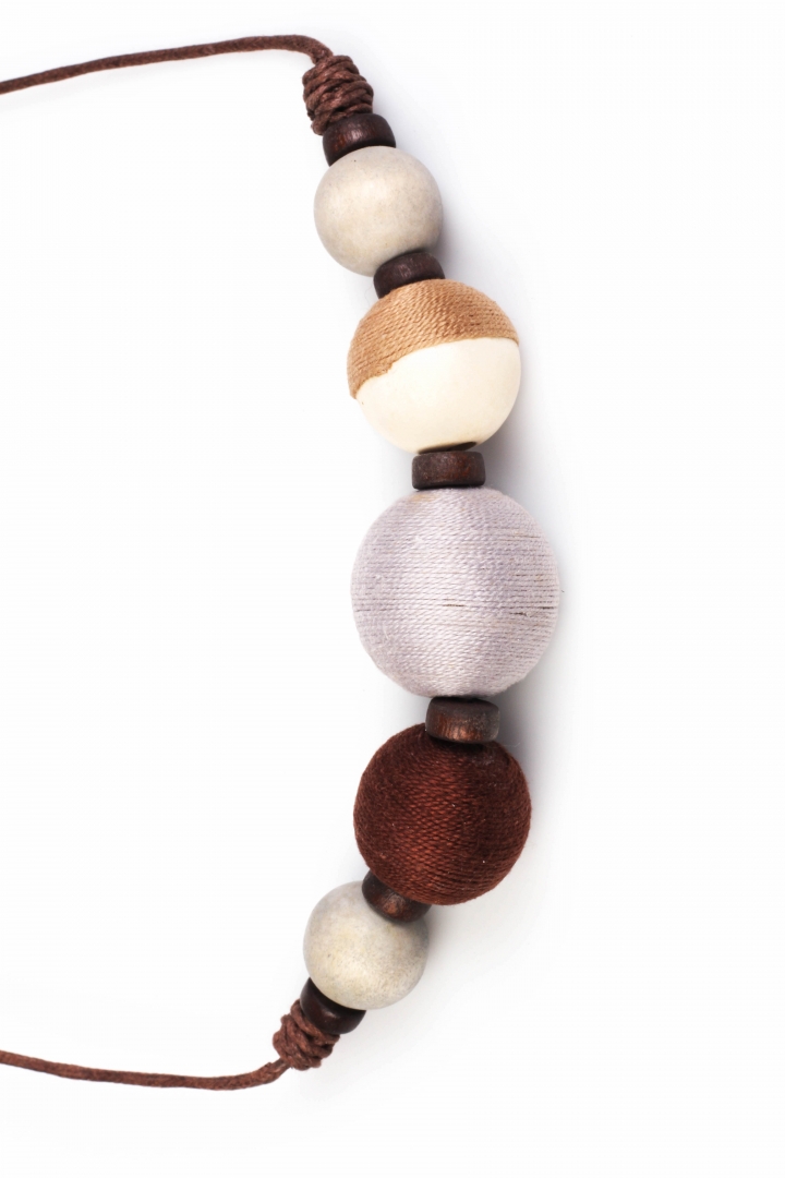 Knitted beads in earthy and grey tones form a beautiful necklace for women.