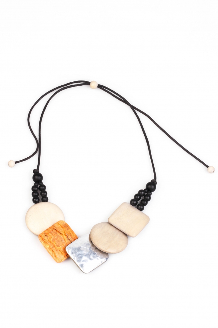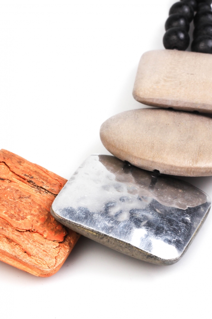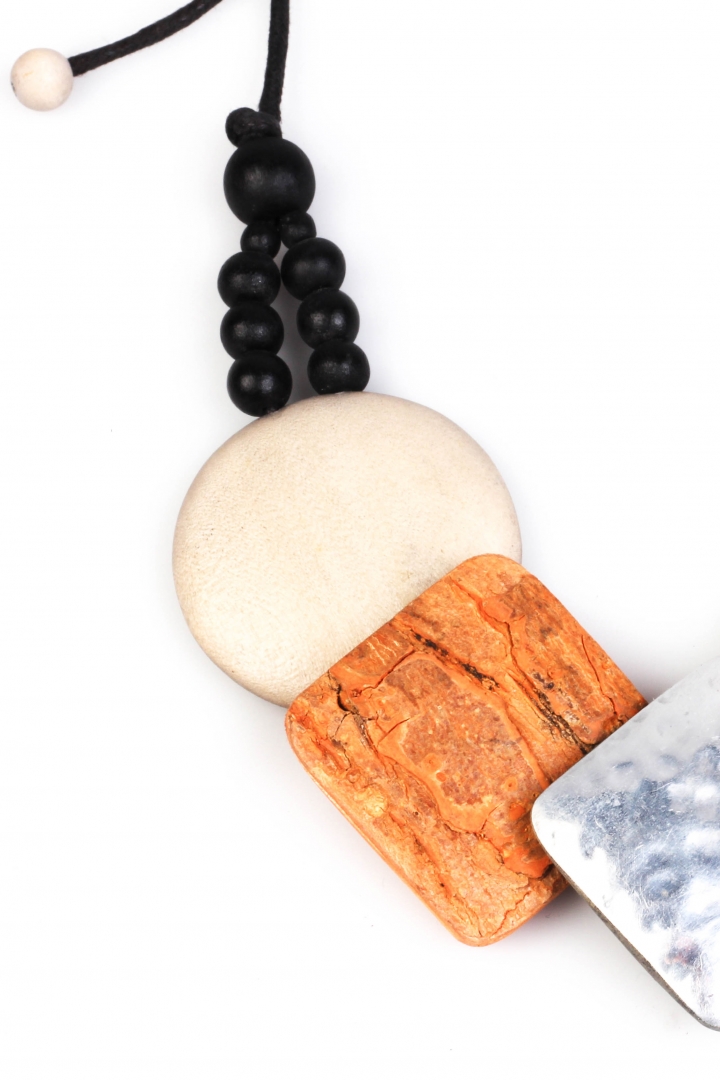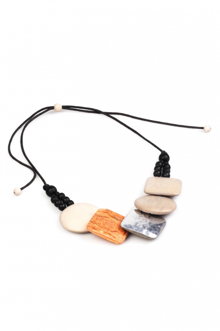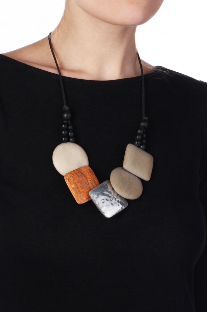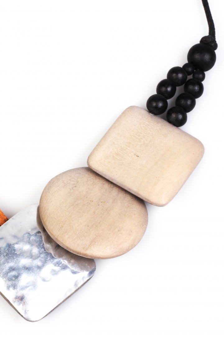 Flat orange and silver beads in triangular formation. A light statement necklace - perfect accesory for fashionable woman.