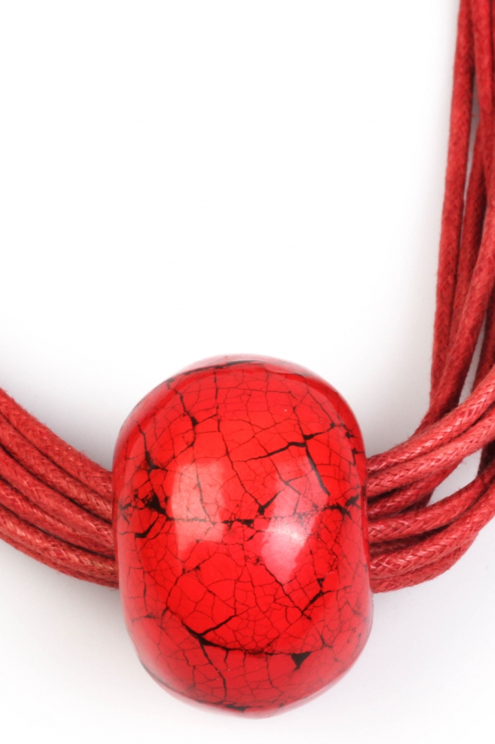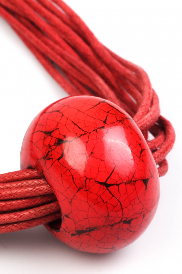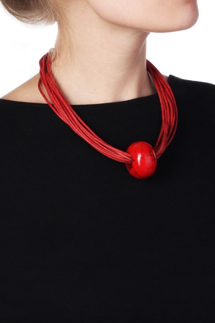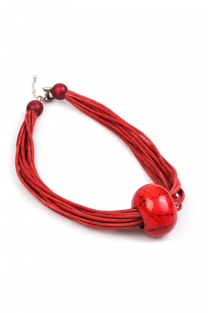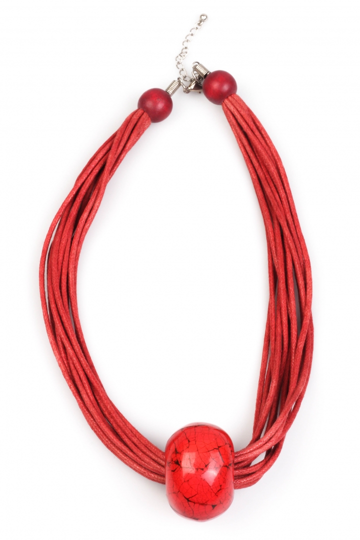 A passionate red leaf-texture wooden bead on a bunch of strings harmonize in a bold and bright statement necklace.