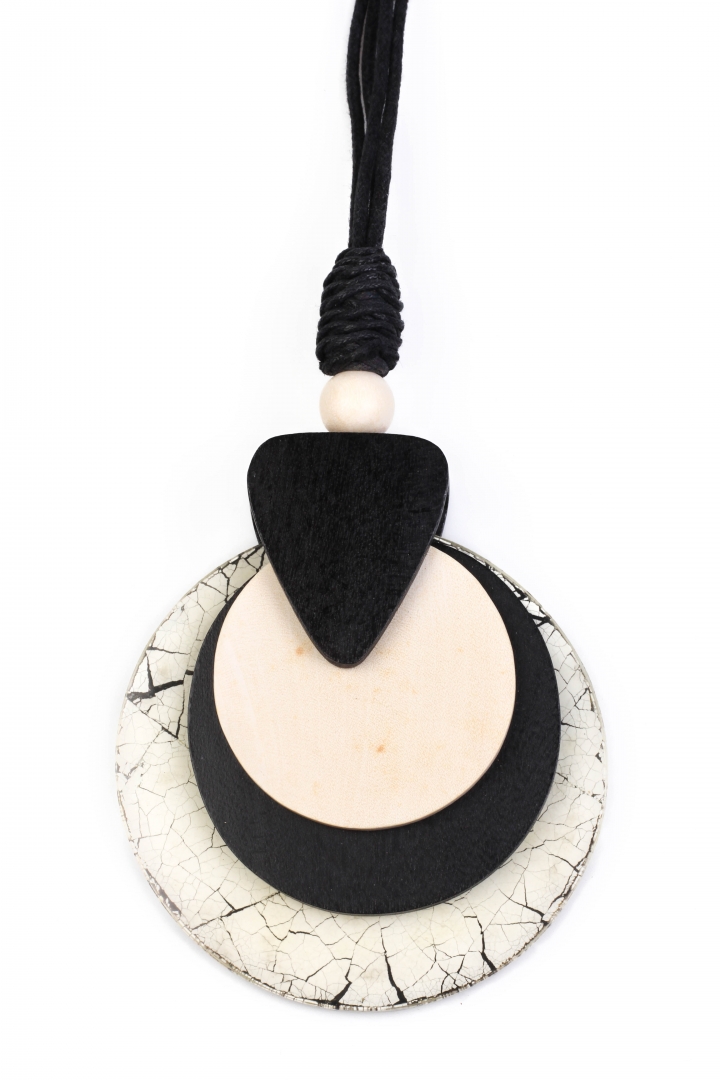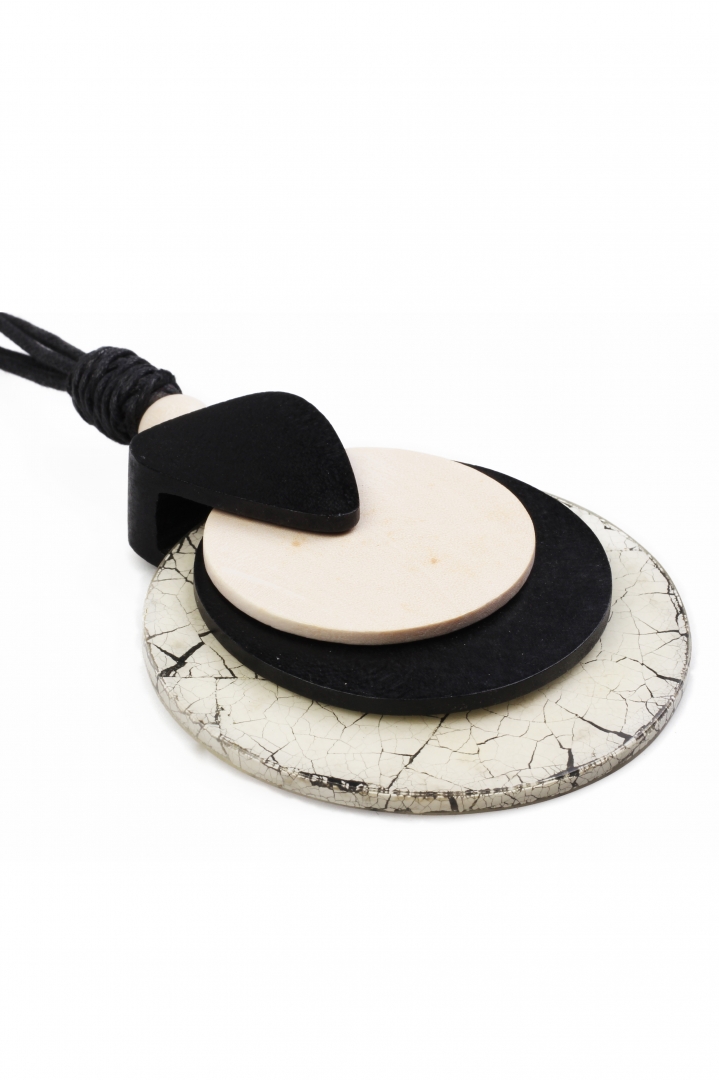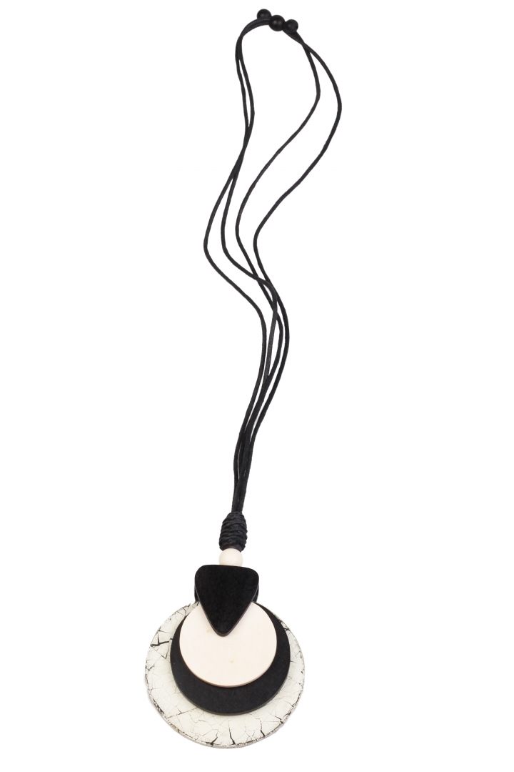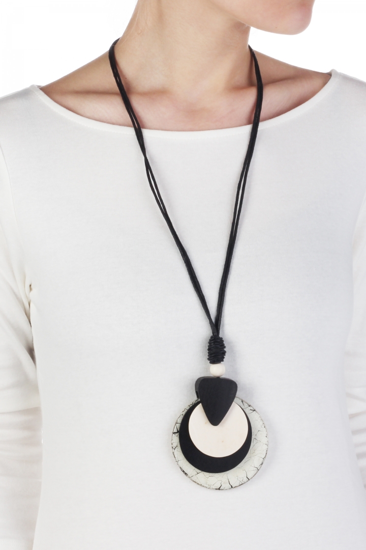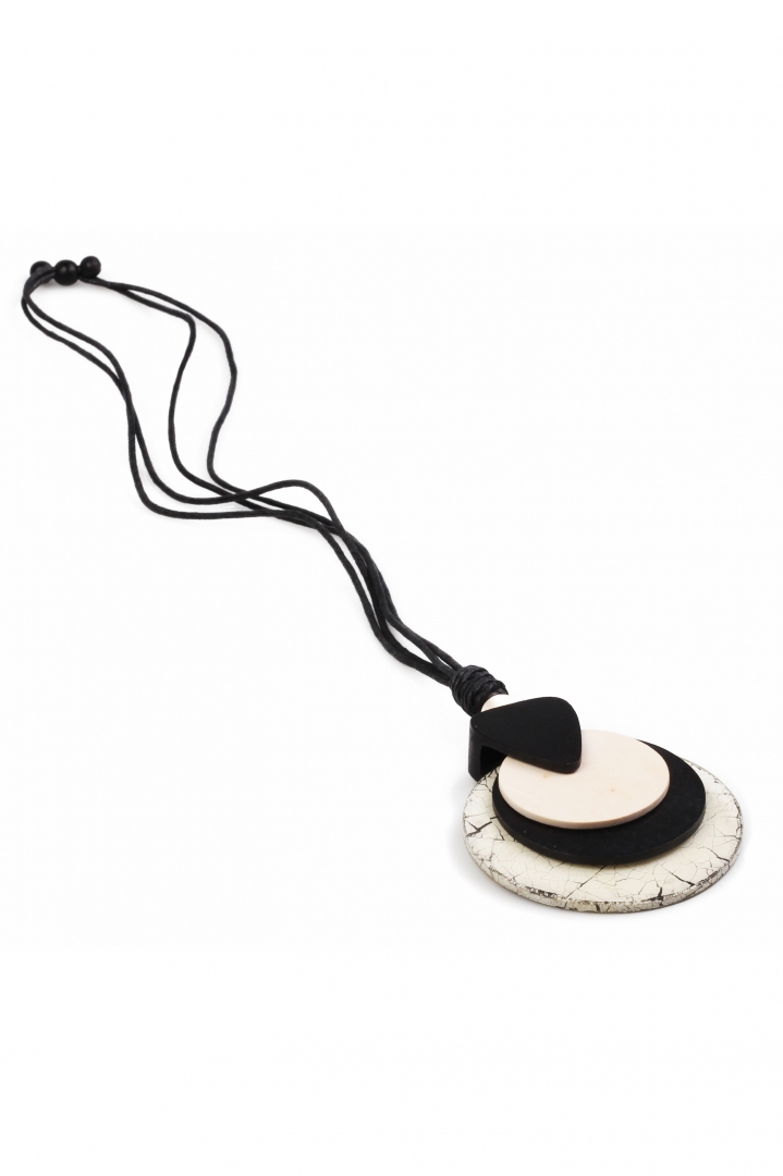 Texturized chunky medallion necklace in monochrome for a bold look.