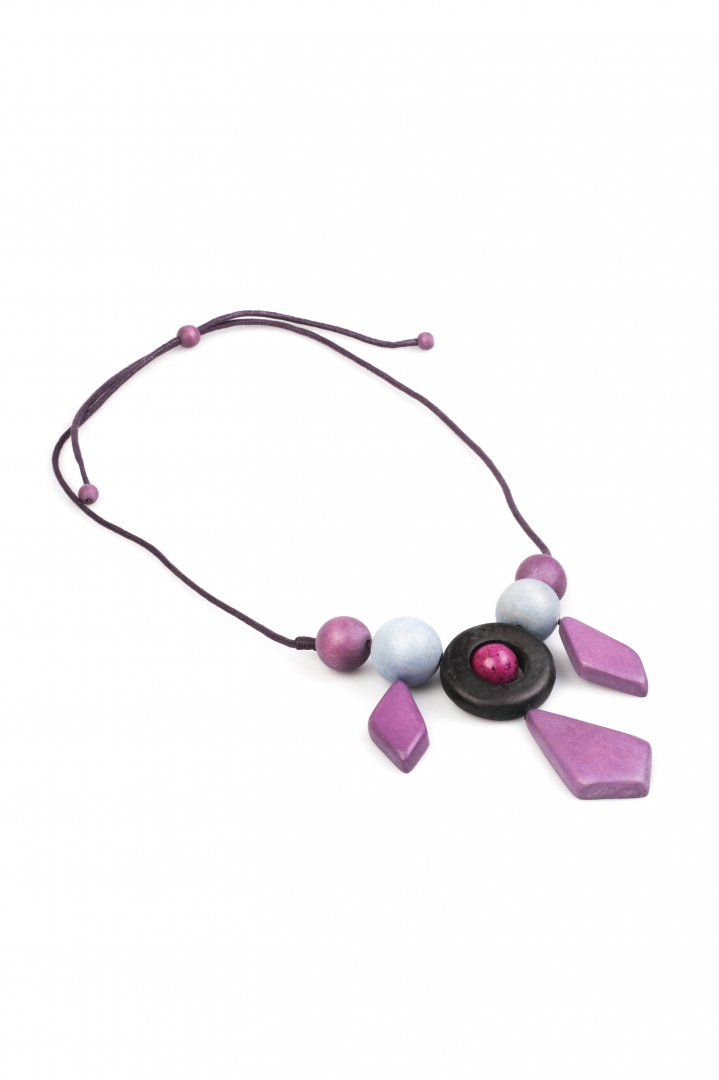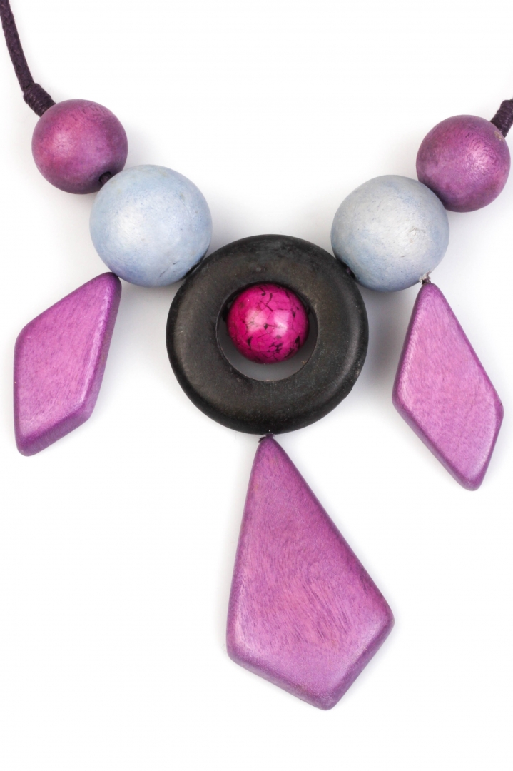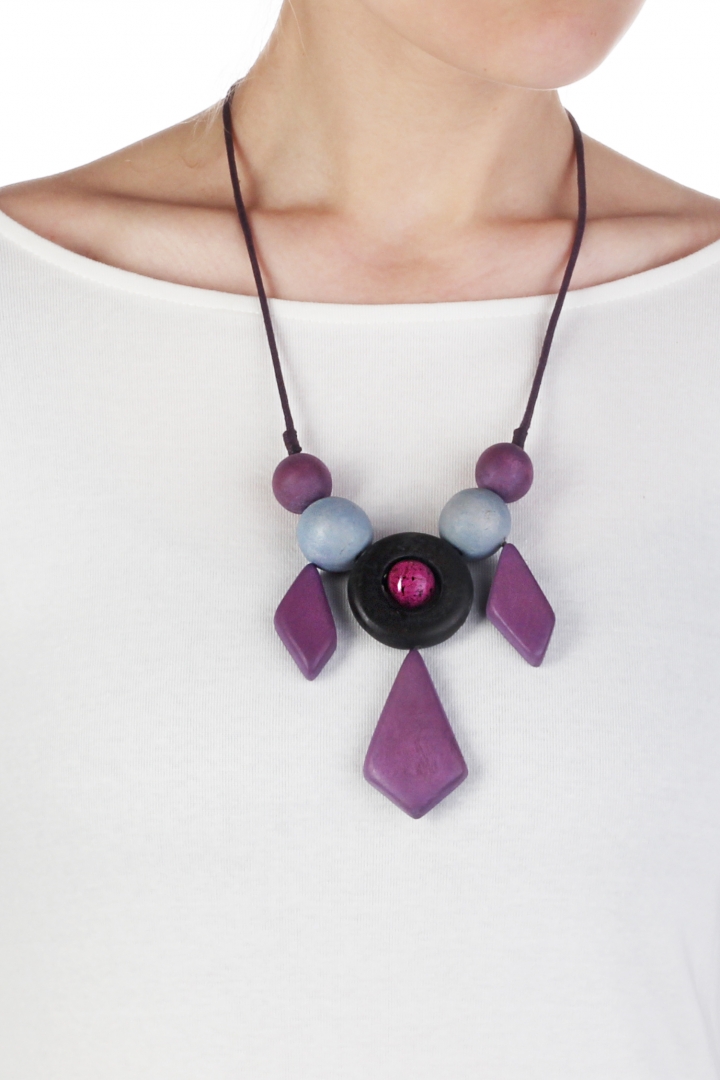 A geometrical necklace with a circumspunct in deep purple and violet.