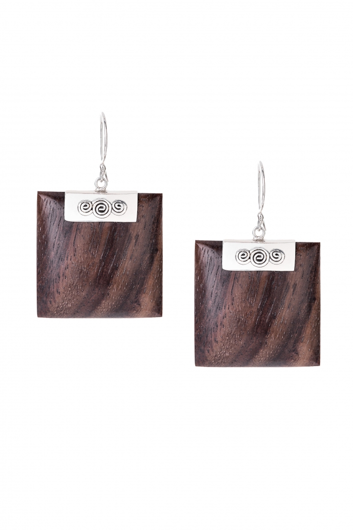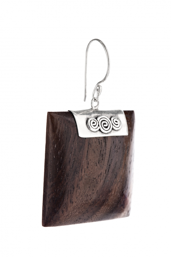 Silver Earrings with Wood