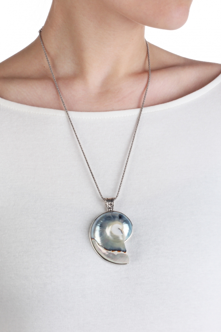 The shape of nautilus shell was used to measure the so-called golden ratio and is used in architecture, fashion and beauty. Also, it represents connection with never-ending and flawless cosmos. Wear a piece of perfection on your neck!