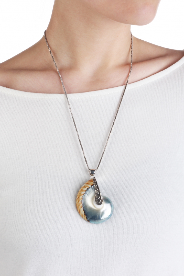 The shape of nautilus shell was used to measure the so-called golden ratio and is used in architecture, fashion and beauty. Also, it represents connection with never-ending and flawless cosmos. Wear a piece of perfection on your neck!