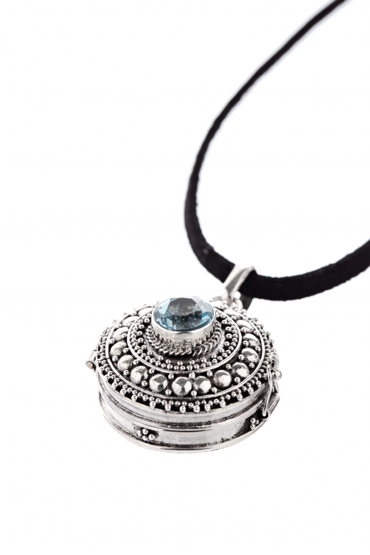 Silver Pendant Box with Blue Topaz
