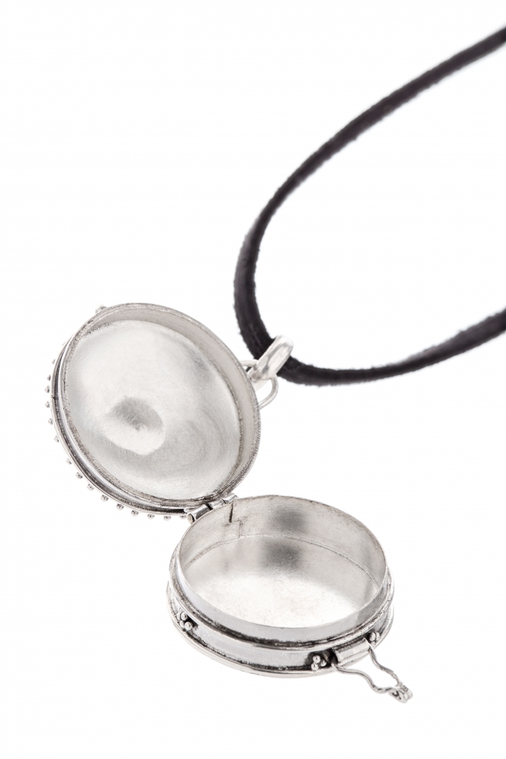 A magnificent medallion with a secret you can keep - a little note, a tiny picture or just something precious. With a tight lock-like clasp to secure it.