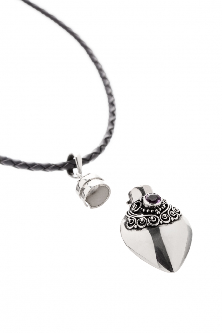 Silver Pendant Box with Gemstone (Amethyst)