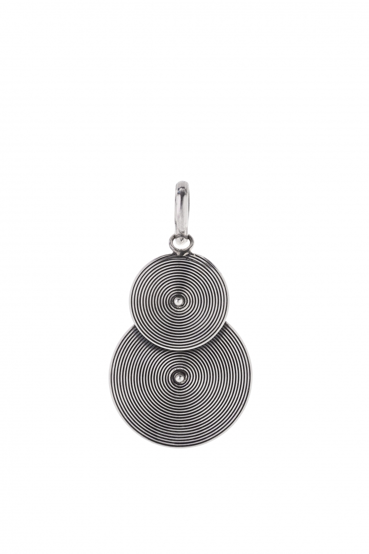 A classic double-layered spiral pendant coated in sterling.