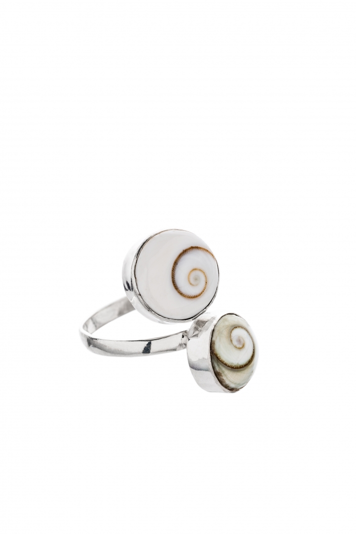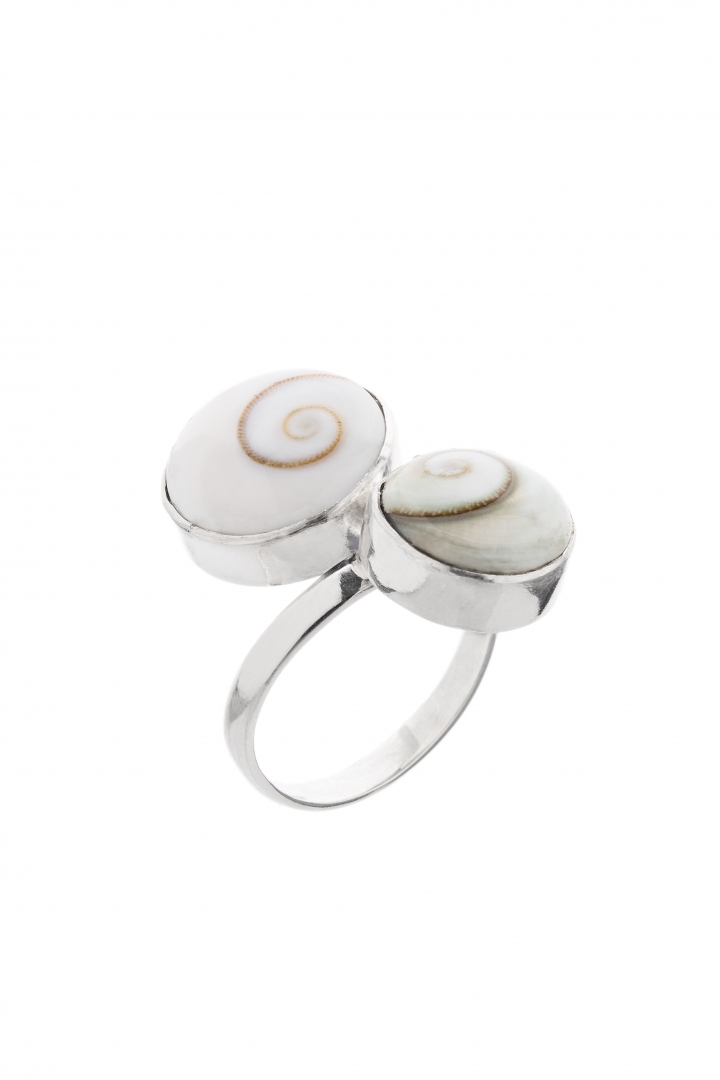 A polished creamy white shell ring that looks lovely on your palms. Each shell is unique and unrepeatable - a true creation of nature.